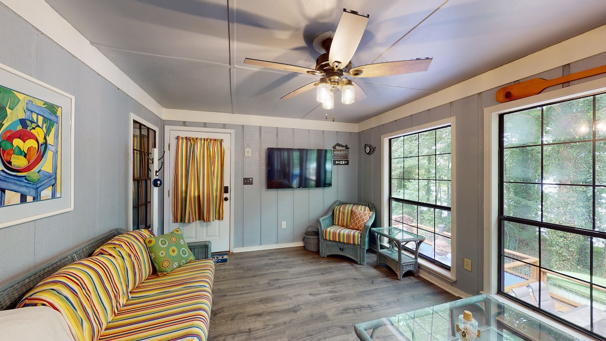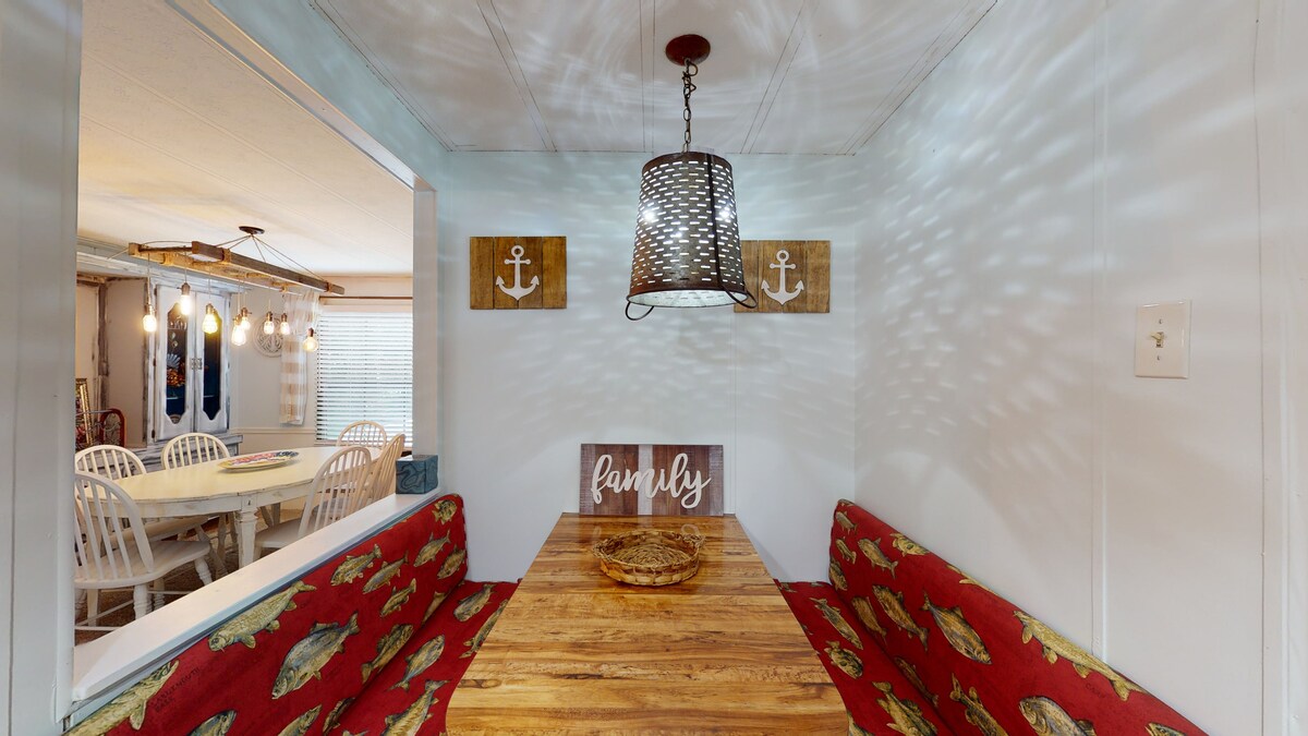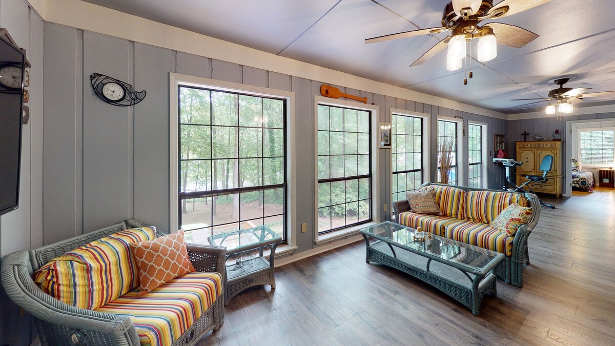 Relax with the whole family or friends at this lakeside retreat. Kick back, grill out, or fish on the dock and enjoy the outdoor spaces. Plenty of bedrooms and areas of the house for adults and kids alike. Perfect spot for relaxing and enjoying the sunrises and sunsets. Enjoy plenty of lake activities including multiple paddleboards, multiple kayaks, canoe, paddleboat and multiple rafts and floats. Jump off the dock or wade into the lake from the sandy beach at the property edge.